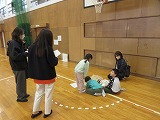 体育では、跳び箱です。開脚跳びが上手です。準備片付けも全員で協力して行っています。