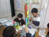 保護者の方に来てもらい、それぞれのグループで作った動くおもちゃで遊んでもらいました。