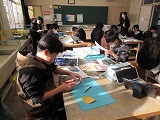 図工の感想画が完成に近付いています。スパッタリングやマーブリングを生かして作っています。