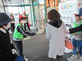 6年生の代表児童4名が交通少年団として、イオン半田店で交通安全キャンペーンに参加しました。イオンの出入り口でお客さんに交通安全を呼びかけました。4名の児童は寒さに負けず元気いっぱい呼びかけました。
